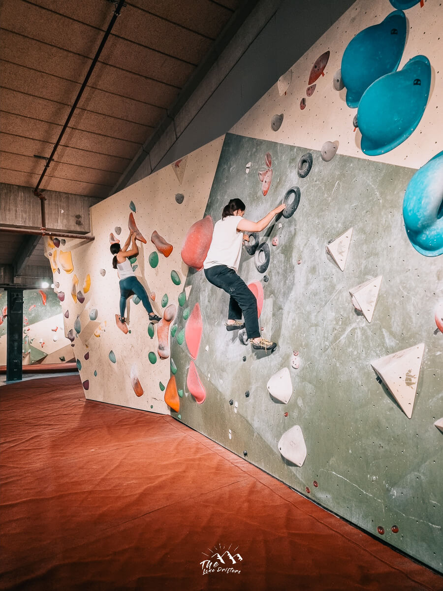 Je komt binnen, loopt de trap op en staat direct in de enorme klimhal. Midden in de ruimte vind je een ronde balie waar je je aanmeldt en waar het personeel (meestal) met een glimlach klaarstaat. De hal zelf? Die is echt huge: met zo’n 250 routes verdeeld over 3400 m² is het onmogelijk om je te vervelen. Er is een mooie mix van stijlen, met veel moderne boulders. Niet jouw ding? Er zitten gelukkig ook meer traditionele, technische routes tussen. Voor wie wil trainen (lees: je handen afbeulen aan een campusboard), is er een goed uitgeruste trainingsruimte met alles wat je nodig hebt om sterker te worden.